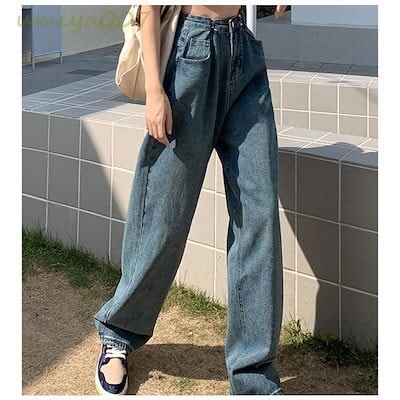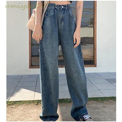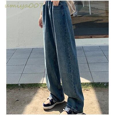 人気 デニムパンツ レディース ワイドパンツ ガウチョパンツ カジュアル ジーンズ ロング丈 オシャレ ストレート ハイウエスト 体型カバー 新作