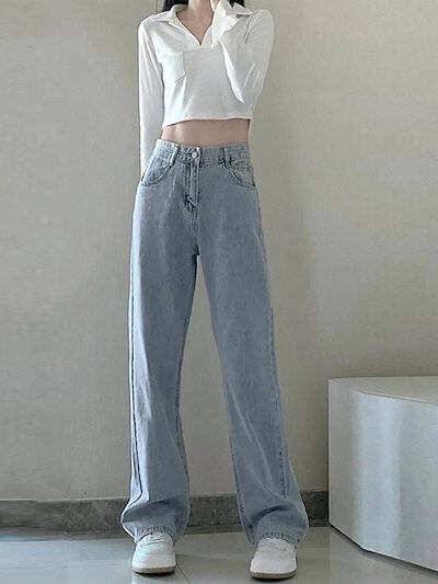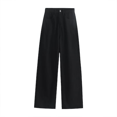 脚長効果抜群!ハイウエストパンツ ブラックストレートジーンズ レディース 2024年秋新作 ドレープワイドレッグ