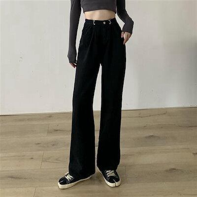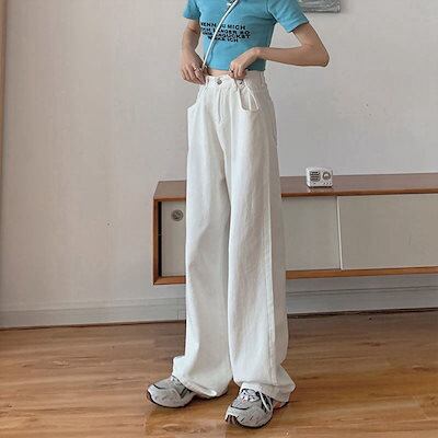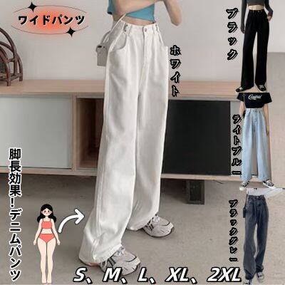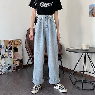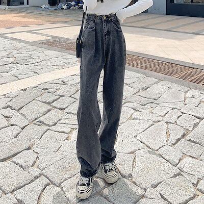 デニムパンツ レディース 2025 新作 ハイウエスト ゆったり ストレートパンツ ドレープ カジュアル ロングパンツ