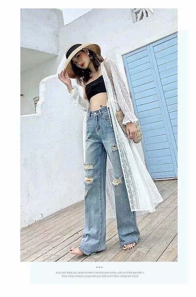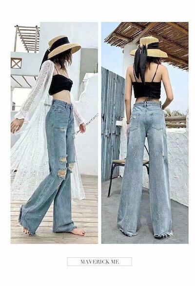 新作 レディース デニムパンツ ジーンズ ロングパンツ ストレートレッグジーンズトワイドパンツ 11
