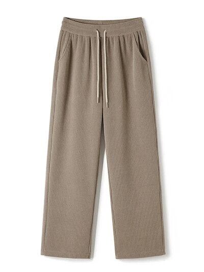 カジュアルパンツ 新作 美脚 グレー ワイドパンツ レディー ストレートシリンダ ハイウエスト 垂下感
