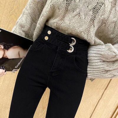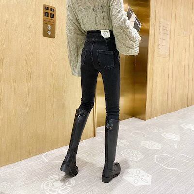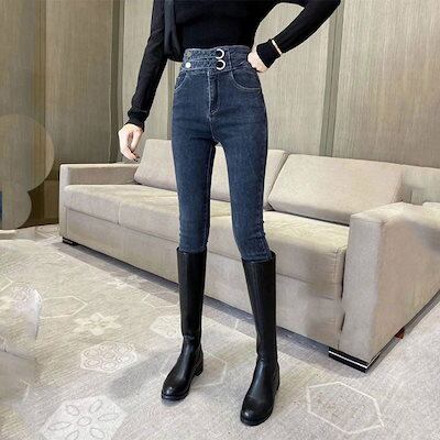 3日以内出荷脚長効果スキニーデニムパンツ ハイウエストジーンズ23新作スリムスリムでタイトなストレッチ レディース 韓国