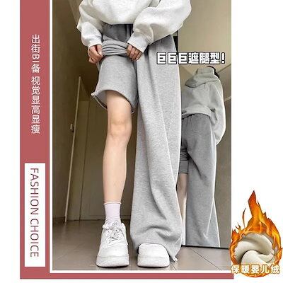 レディースグレースポーツパンツプラスベルベット新作ゆったり大きいサイズストレートワイドレッグパンツカジュアルレギンス