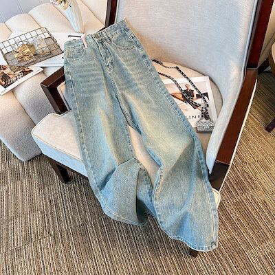 春秋新作 ガウチョパンツ ライトブルー ストレートシリンダ ジーパン ゆとりがある 韓国ファッション ハイウエスト ワイドパンツ レディース