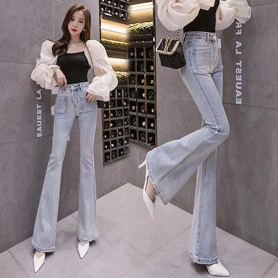 メガ割 新作フレアパンツレディースハイウエストドレープジーンズストレッチスリムスリミングスリ