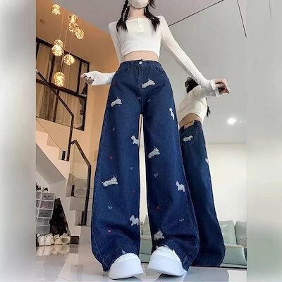 ジーンズ 新作 ハイウエスト ジーンズ レディース ルーズ ストレート デザイン ワイドパンツ ファッション