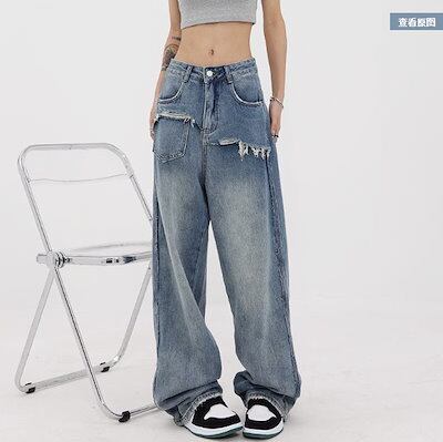 KEN STUDIOデザインレトロワイドレッグジーンズレディース2025春夏新作ハイウエストストレートフロアレングスパンツ