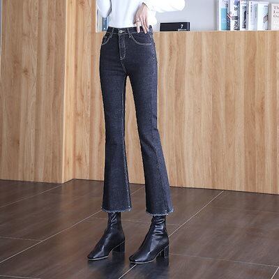 2025 春夏新作 ダークブルー マイクロフレアジーンズ レディース 89ポイント 小さめサイズ スリミング ハイウエスト 伸縮性 万能
