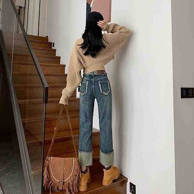 春秋の新作 ガウチョパンツ ハイウエスト 着痩せ 復古 ストレートシリンダ ジーパン ゆとりがある 九分 やせて見える ワイドパンツ レディース