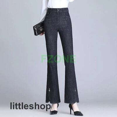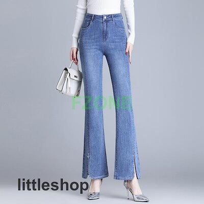 フレアデニムパンツ レディース ロングパンツ スキニー ハイウエスト ストレッチ ボトムス ジーンズ ブーツカット スリム 美脚 通勤 OL