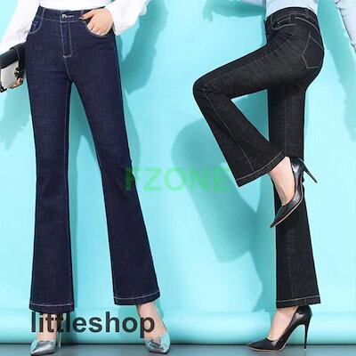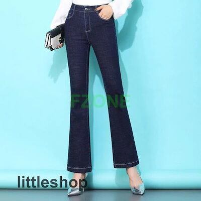 デニムパンツ レディース ストレッチ フレアパンツ ハイウエスト ジーンズ カットオフ 九分丈 ストレッチ オフィス 普段着 通勤 OL