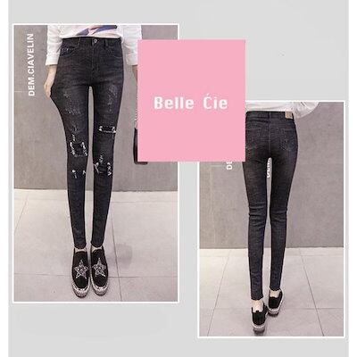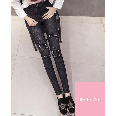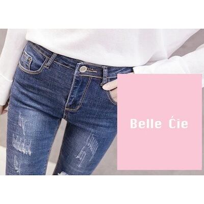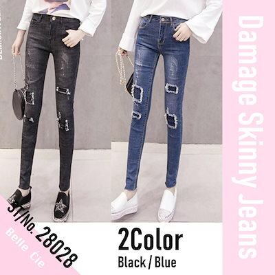 デニムパンツ レディース ストレッチ ジーンズ ダメージ デニム スキニーパンツ ブラック ブルー 黒