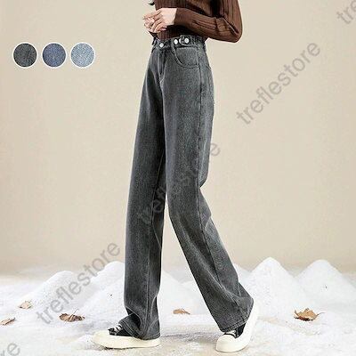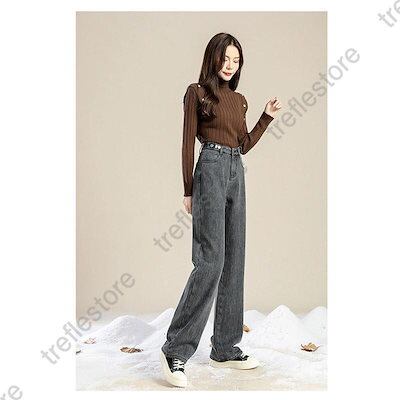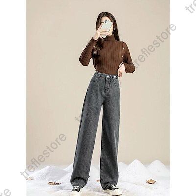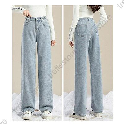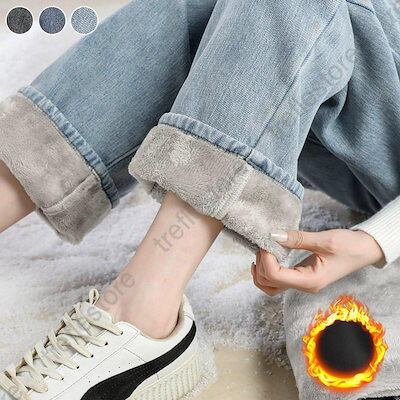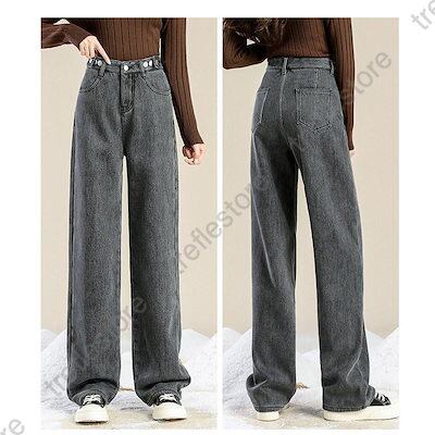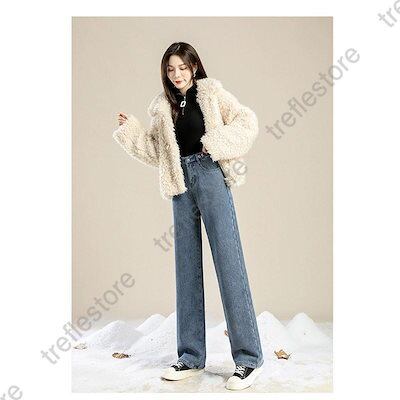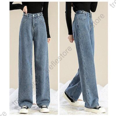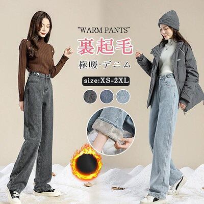 ワイドパンツ レディース ジーパン 裏起毛 裏ボア ジーンズ デニム パンツ 冬物 ハイウエスト ストレッチ 細身 スリム