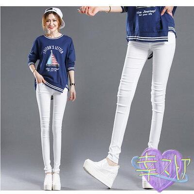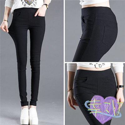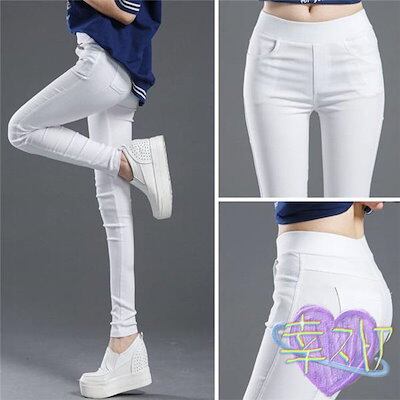 レギンスパンツ レディース スキニーパンツ ウエストゴム ダメージ ストレッチパンツ ボトムス 美脚 伸びる 楽ちん ハイウエスト 無地 美尻