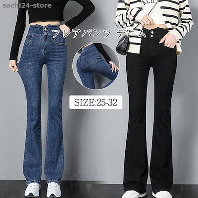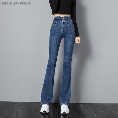 春夏新作 フレアパンツ デニム レディース ロング丈 スキニー ハイウエスト ストレッチ ボトムス ジーンズ 美脚 オフィス 通勤 OL