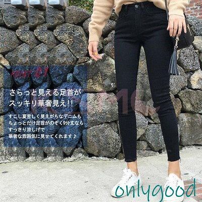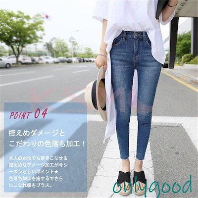 スキニー ジーンズ レディース デニム パンツ ストレッチ アンクル丈 9分丈 10分丈 ダメージ クラッシュ