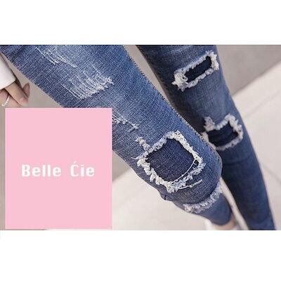 レディース ストレッチ ジーンズ ダメージ デニム スキニーパンツ ブラック ブルー 黒