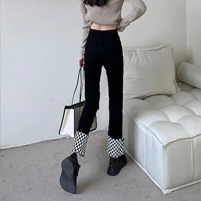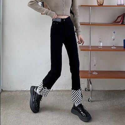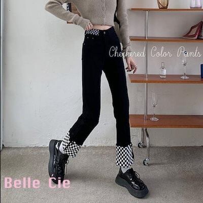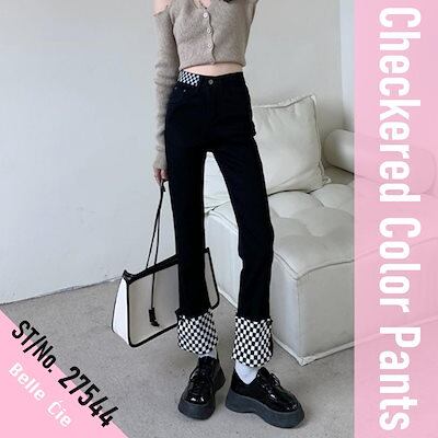 チェッカー ブロックチェック ロングパンツ パンツ パンツ レディース 配色 バンド ダンス 衣装 ストレッチ デザインパンツ オールシーズン