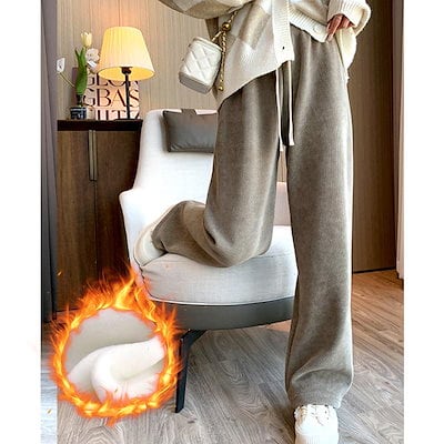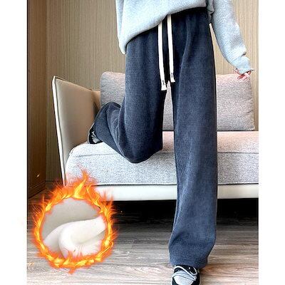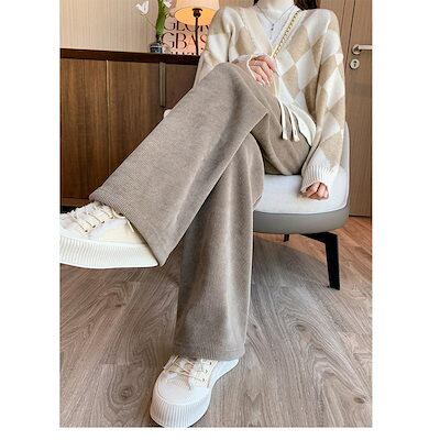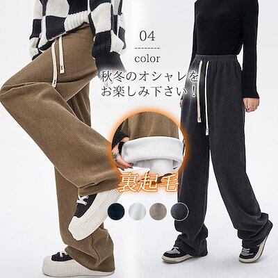 ワイドパンツ レディース パンツ ボトムス ストレッチ リブ コーデユロイ 保温 厚手 カジュアル 通勤 オフィス 体型カバー 脚長効果 秋冬