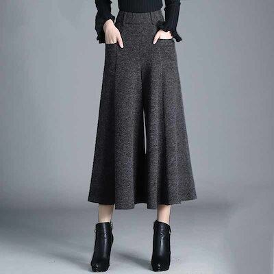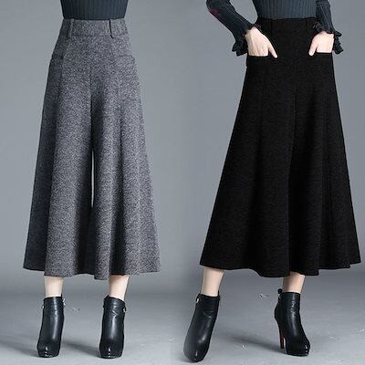 大人気 通勤 ラシャ ワイドパンツ ニット 美脚着痩せラシャゆったりパンツ太め体型カバーレディース韓国ガウチョパンツ 体型カバー アンクルパンツ 九分丈 美脚 細見え ウール 防寒保温 福袋