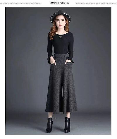 おしゃれヨガウエア 大人気 通勤 ラシャ ワイドパンツ ニット 美脚着痩せラシャゆったりパンツ太め体型カバーレディース韓国ガウチョパンツ 体型カバー アンクルパンツ 九分丈 美脚 細見え ウール