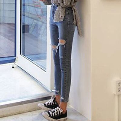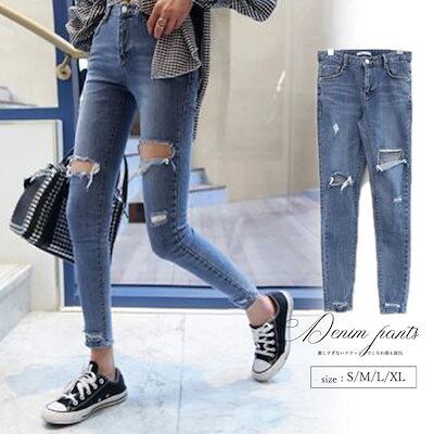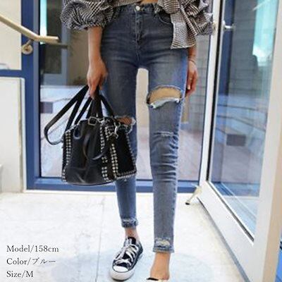 【メガ割 】ダメージ スキニー レディース デニムパンツ タイト ジーンズ アンクル クラッシュデニム 穴開き3970