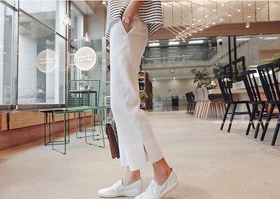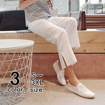 【即納】テーパードパンツ クロップドパンツ チノパン アンクルパンツ リネン調 スリット 9分丈 ボトムス パンツ 無地 レディース おうちコーデ (アパレル)