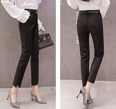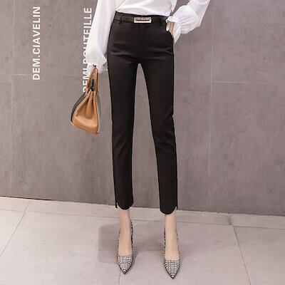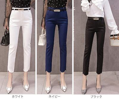レディース アンクルパンツ スリット クロップド 半端丈 スリム タイト ハイウエスト ボトムス カジュアル 可愛い フェミニン きれいめ エレガント おしゃれ お出かけ オフィス デイリー ホワイ
