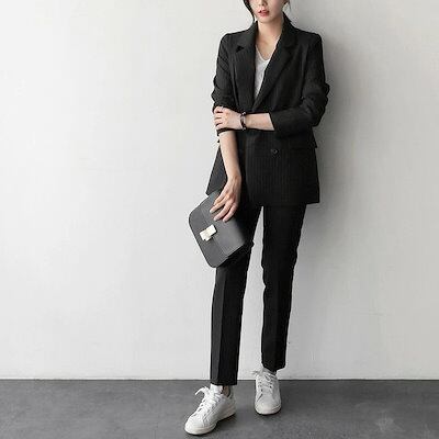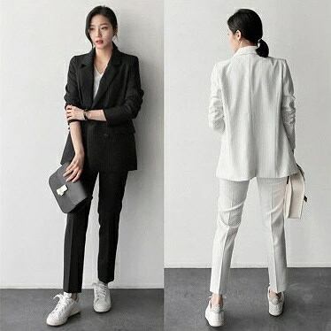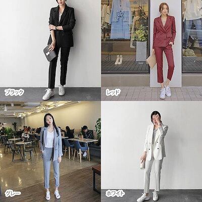 レディース 上下2点セット スーツ セットアップ テーラードジャケット アンクルパンツ カジュアル 可愛い フェミニン きれいめ 上品 エレガント おしゃれ オフィス ブラック レッド グレー ホワ