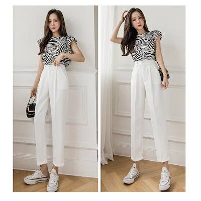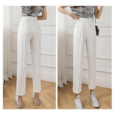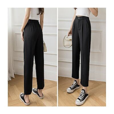 【急速出荷】センタープレス タック パンツ ウエストゴム カジュアル 上品 清楚 きれいめ オフィス / レディース ボトムス 大きいサイズ スラックス お呼ばれ クロップド アンクル ハイウエスト