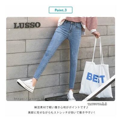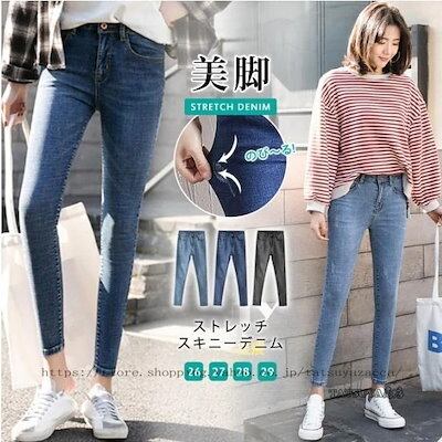 デニムパンツ レディース スキニーデニム ストレッチ パンツ アンクル丈 七分丈 スキニーパンツ