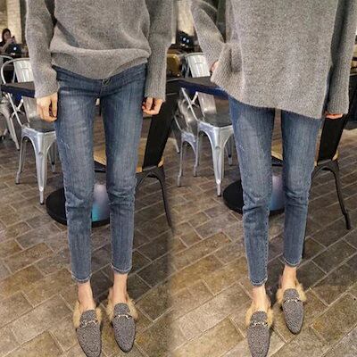 【メガ割 】152 裏起毛2typeセール中アンクル丈スキニーデニムパンツ ジーンズ ボトムス ズボン レディース