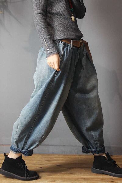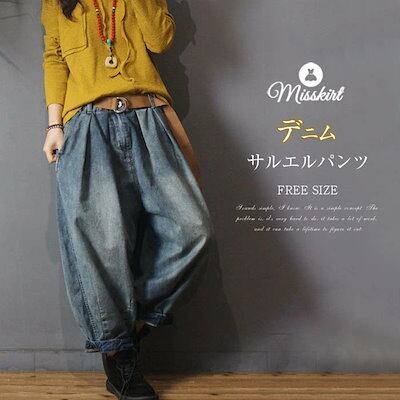 サルエルパンツ レディース デニム ボトムス ロング パンツ デニムパンツ ロングパンツ ワイドパンツ ガウチョパンツ コクーンデニム サーカスパンツ パッチワーク ウエストゴム アンクル丈 お洒落