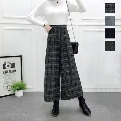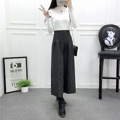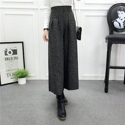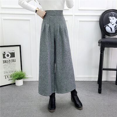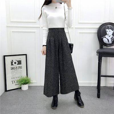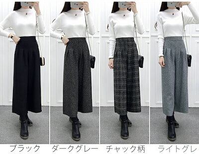 ワイドパンツ レディース ハイウエスト ボトムス 厚手 春秋 秋服 春服 七分丈 ウエストゴム 着痩せ 細見え アンクルパンツ ガウチョパンツ チェック柄ロングパンツ チェック柄パンツ 無地 大きいサ