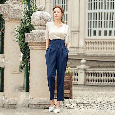 レディース アンクルパンツ クロップド 半端丈 カジュアルパンツ ハイウエスト ボトムス カジュアル キレカジ 大人可愛い きれいめ エレガント おしゃれ お出かけ ビジネス オフィス お仕事コ