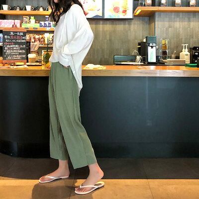 レディース アンクルパンツ ゆるシルエット 半端丈 ハイウエスト ボトムス カジュアル 可愛い フェミニン きれいめ エレガント おしゃれ お出かけ オフィス ベージュ イエロー ブルー ブラッ