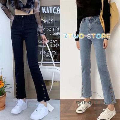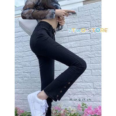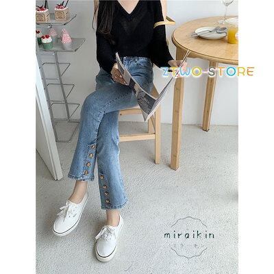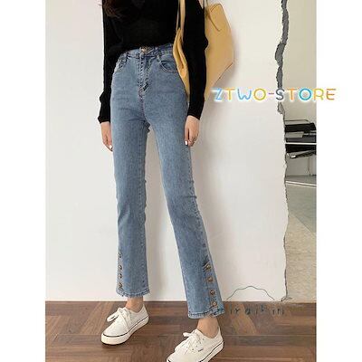 デニムパンツ アンクル丈 レディース 韓国 おしゃれ スリムジーパン ハイウエスト 裾ボタン ジーンズ カジュアル ボトムス 春秋夏 レトロ スキニーデニム 着やせ