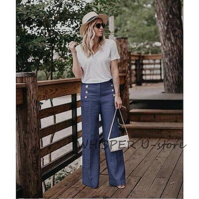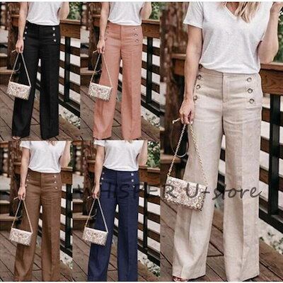ワイドパンツ レディース きれいめ 春 9分丈 アンクルパンツ ハイウエスト フロントボタン ガウチョパンツ カジュアル ボトムス