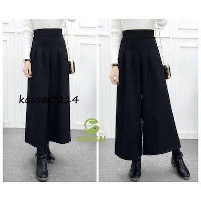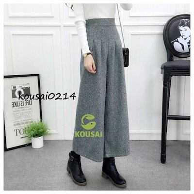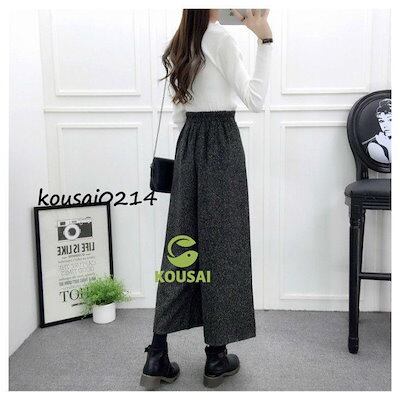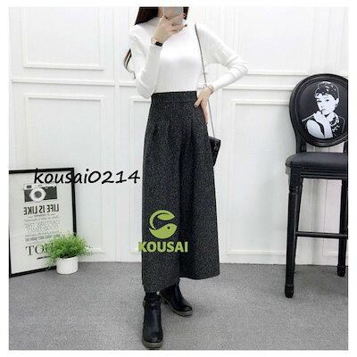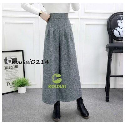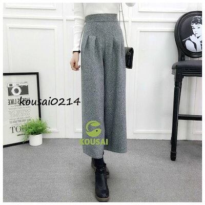 ウエストゴム ウール タッチ タック ワイド パンツ ボトムス ロング カジュアル 上品 レディース ワイドパンツ きれいめ アンクル丈 無地 柄 清楚
