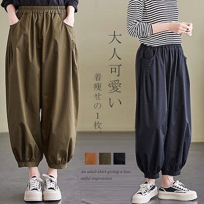 バルーンパンツ パンツ レディース サルエルパンツ ロング丈パンツ ワイドパンツ ギャザー アンクルパンツ 春 夏 ハロンパンツ イージーパンツ 綿パンツ ロング