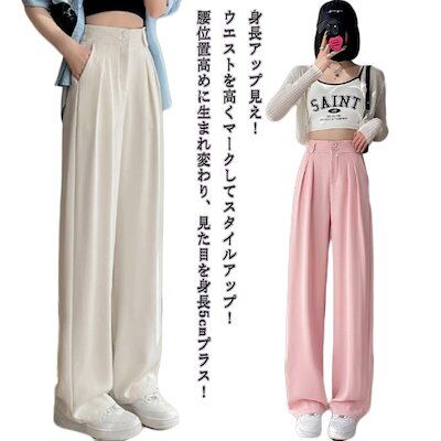 ハイウエスト ワイドパンツ 薄手 涼感 美脚 脚長 ストレートパンツ レディース 長ズボン ロングパンツ 9分丈 アンクルパンツ スリム セミワイドパンツ ウェストバックゴム おしゃれ スラックス 韓