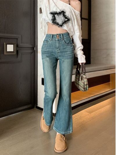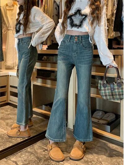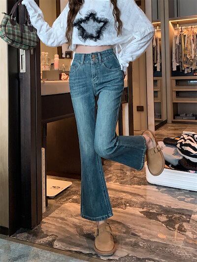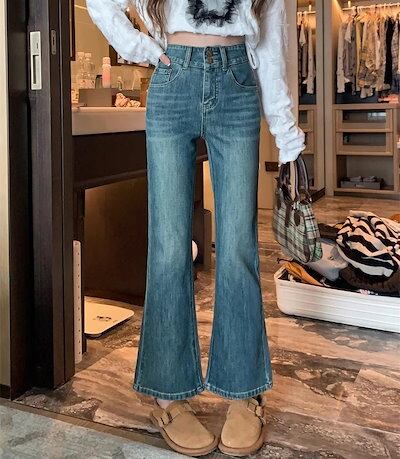40-100KG デニムパンツ ジーンズ gパン 長ズボン 9分丈 ストレッチ フレアパンツ ハイウエスト アンクルパンツ レディース 春 秋 カジュアル 大きいサイズ S-4XL