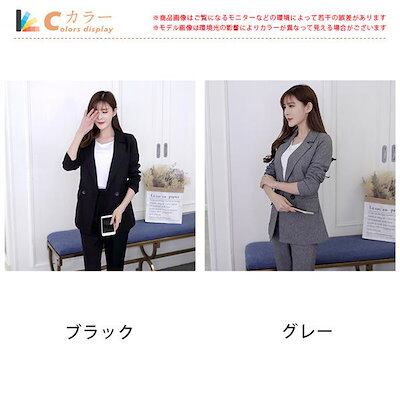 レディース スーツ 長袖 2点セット ジャケット 無地 パンツスーツ 大人 ウエストゴム 通勤 ビジネス フォーマル オフィス カジュアル 秋春