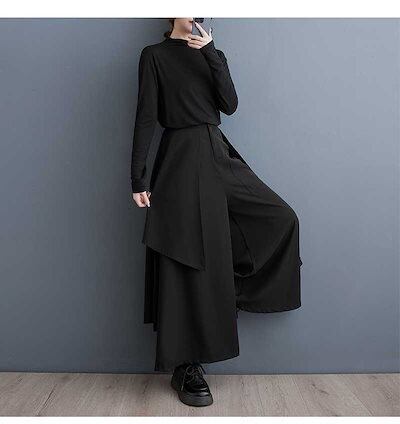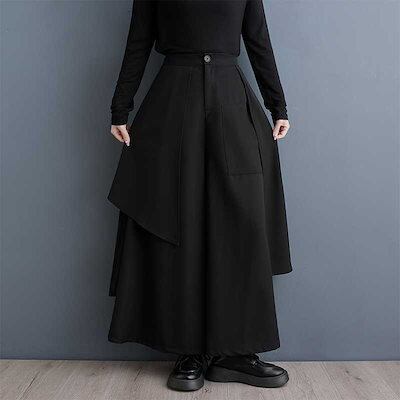 「ファットガール」 2024春新品 キュロットスカート ワイドパンツ ドッキング 体型カバー 大きいサイズ レディース ロングパンツ