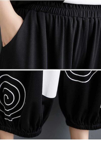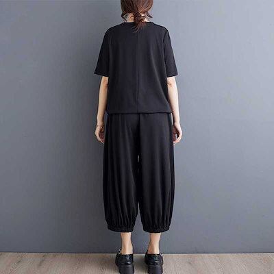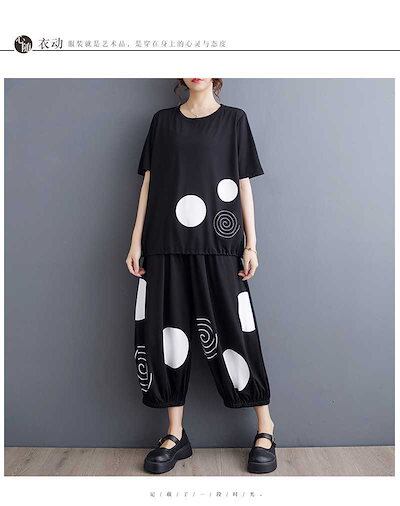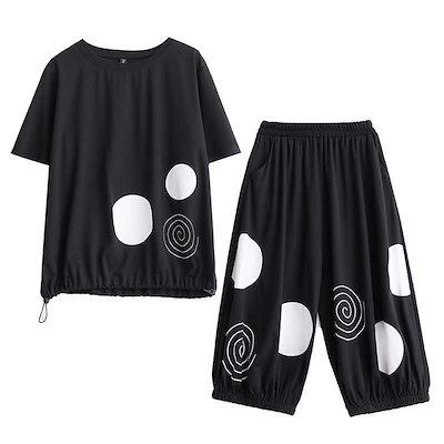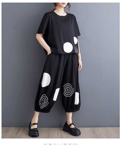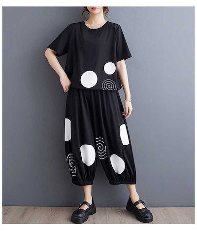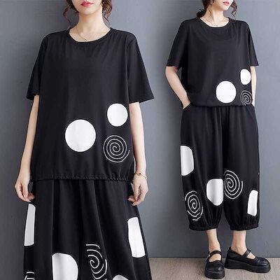 「ファットガール」 2024/春夏/大きいサイズ/レディース/プリント/半袖/Tシャツ/ハーレクインパンツ/ツーピースセット