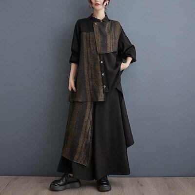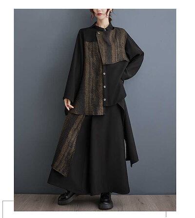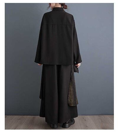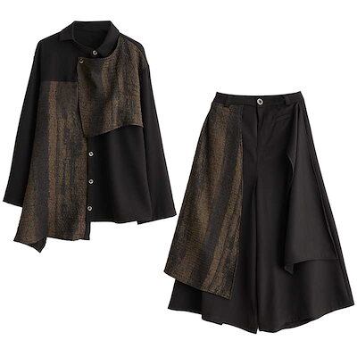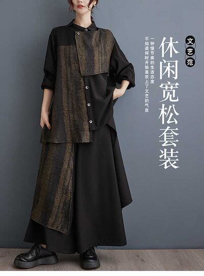 「ファットガール」 2024春 上下セット ブラウス+ワイドパンツ 体型カバー レディース セットアップ
