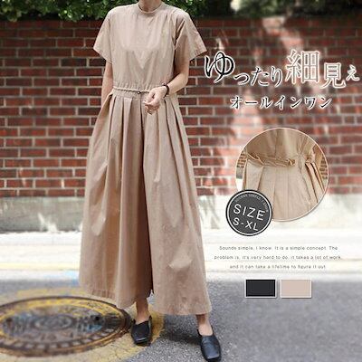 オールインワン レディース 半袖 春 夏 大きいサイズ パンツドレス サロペット つなぎ ワイドパンツ ロングパンツ オーバーオール サロペ ワイド パンツ ロング 無地 リネン コットン ポケット付