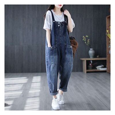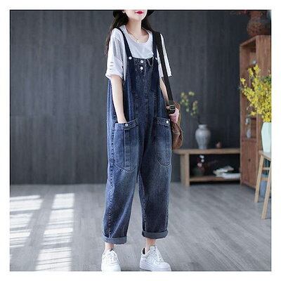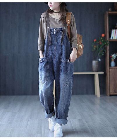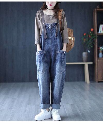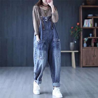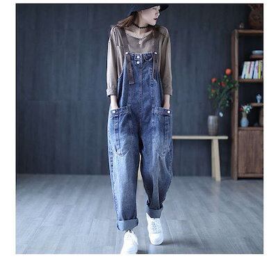 デニムオーバーオール レディース サロペット ロング丈 ジーンズ ゆったり 大きいサイズ おしゃれ デニムパンツ オールインワン ワイドパンツ 春 夏 秋 冬 着痩せ カジュアル おしゃれ 上品 体型