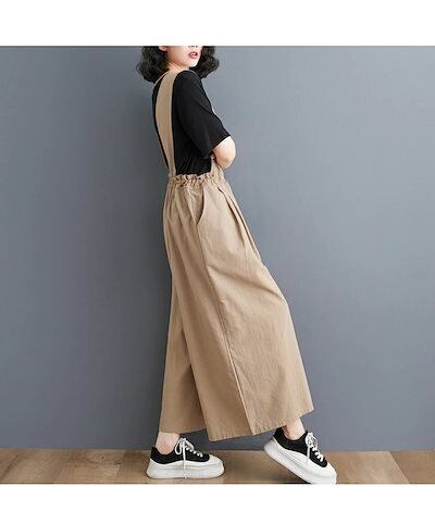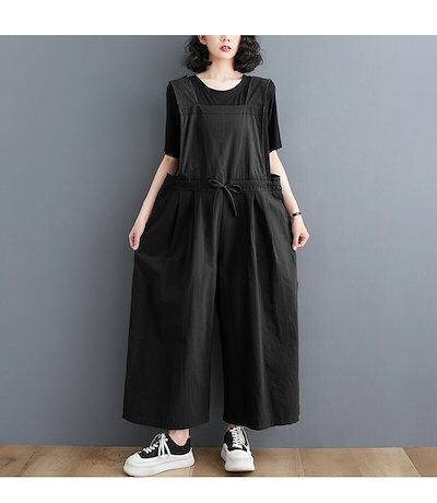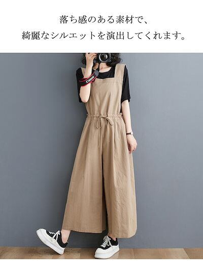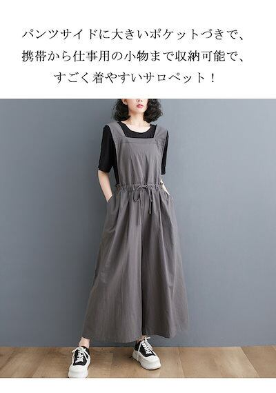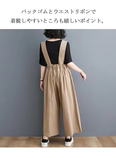 サロペット パンツ レディース ワイドパンツ 春 夏 秋 バックゴム リボン オールインワン ロング ポケット付き 無地 ボトムス 重ね着 レイヤード タック ギャザー ロングパンツ ゆったり 体型カ