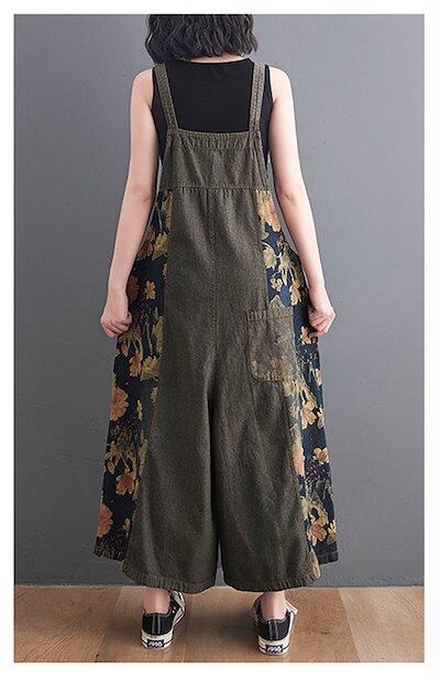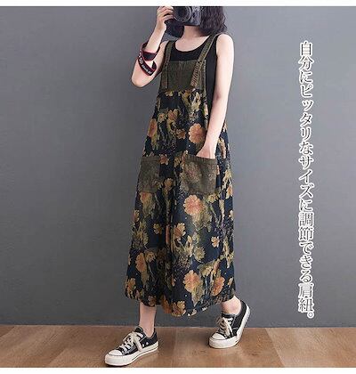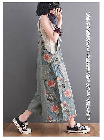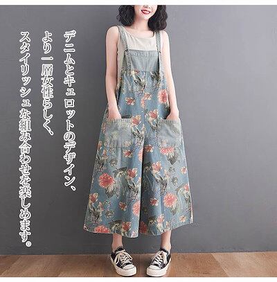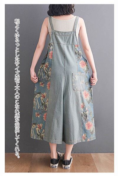 デニムサロペット レディース 花柄 サロペット パンツ デニム オールインワン ポケット付き ワイドパンツ 春 夏 秋 ボトムス 重ね着 ゆったり 体型カバー ジャンパースカート レイヤード オーバー